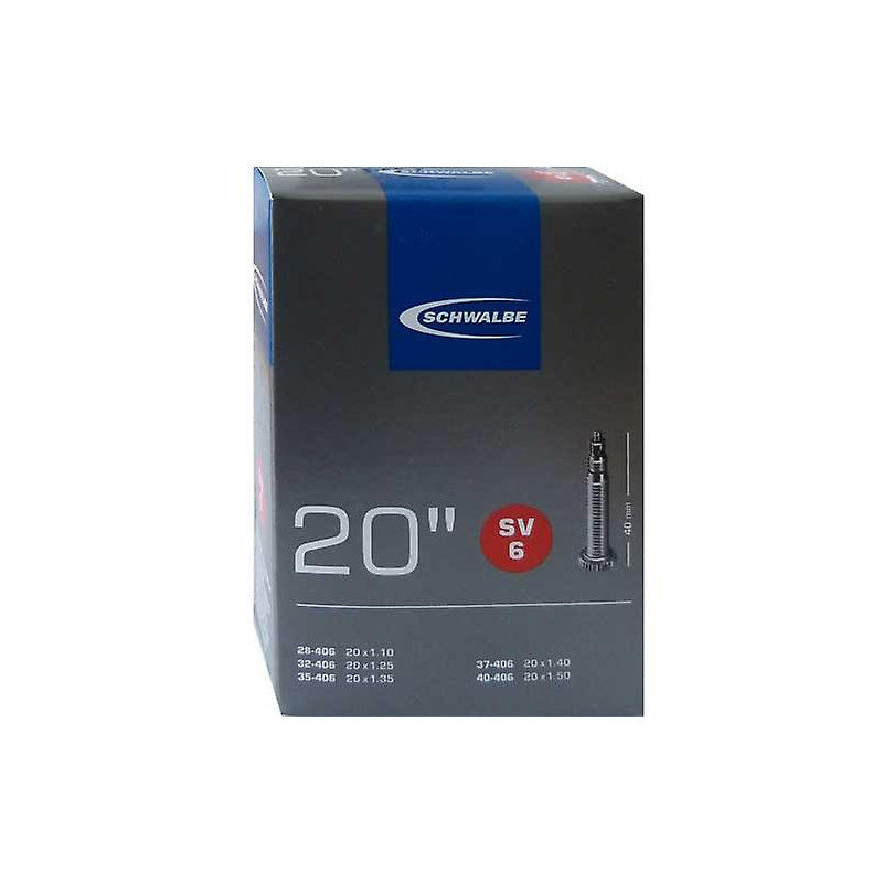 CHAMBRE A AIR SCHWALBE SV6 - 20 POUCES - VALVE PRESTA de 40 mm - ETRTO 28/40-406 (petite valve)