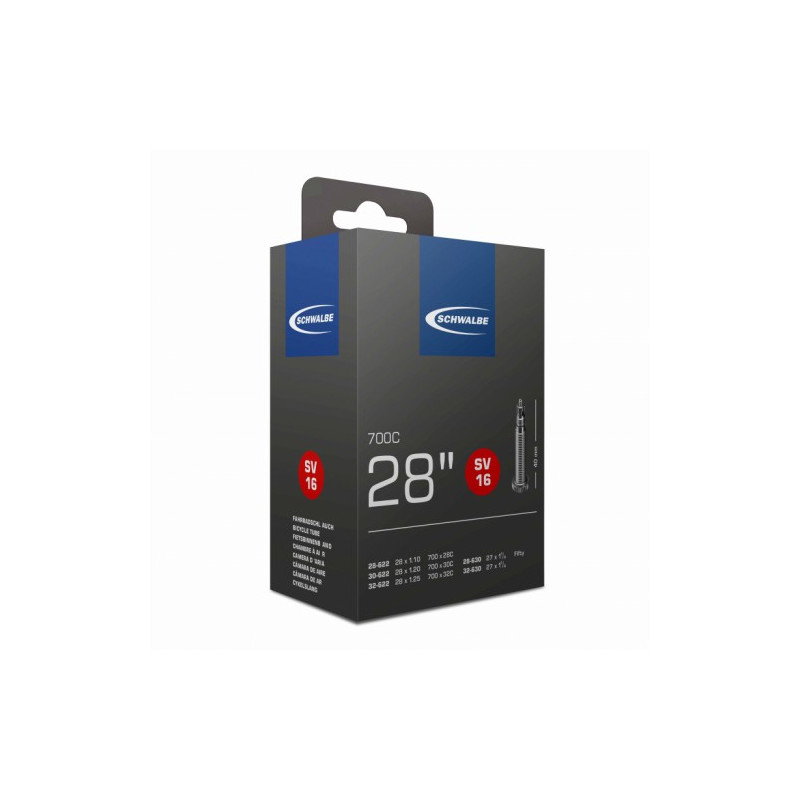 Chambre à air SCHWALBE SV16 - 28 Pouces (700C) - Valve Presta de 40 mm ou petite valve - ETRTO 28/32-622/630